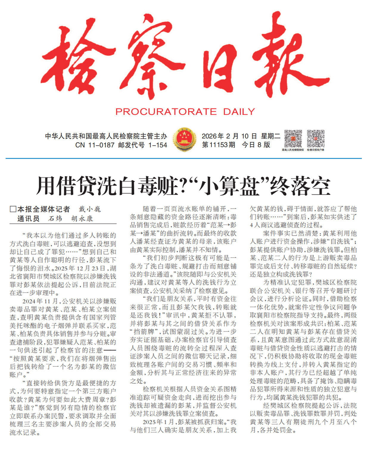 媒体关注丨《检察日报》刊登:用借贷洗白毒赃?“小算盘”终落空