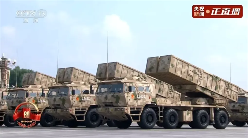 图为:在9月3日纪念中国人民抗日战争暨世界反法西斯战争胜利80周年大会中由中国兵器工业集团江山重工研究院有限公司(简称江山重工研究院)研制的远程箱式火箭炮。(图源:襄阳市国防动员办公室官方网站)